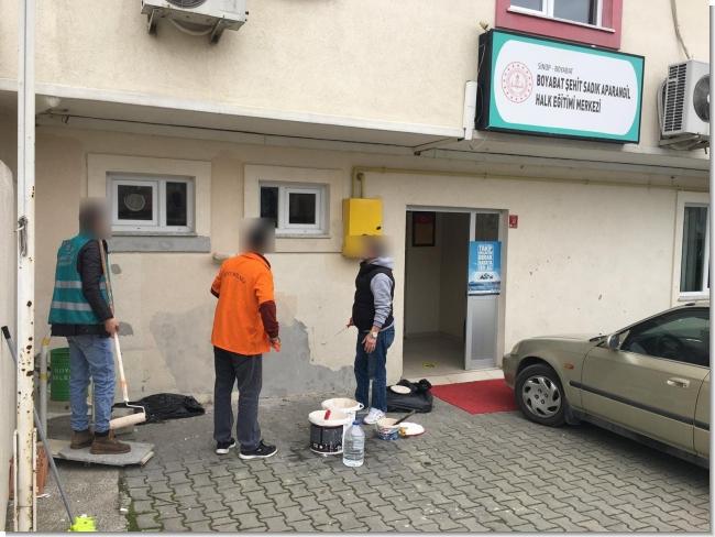 Boyabat’ta kamu kurumları; boya ve bakım çalışmaları ile denetimli serbestlik yükümlüleri tarafından yenileniyor.