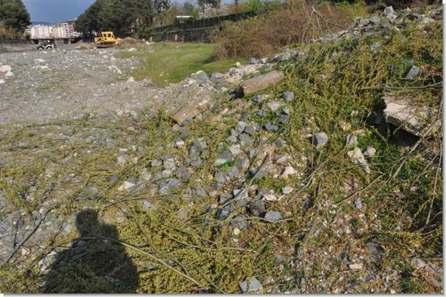 Boyabat Kolaz çay yatağında biriken bu tür engeller doğal su akışını bozarak adeta bir barikat görevi görüyor.