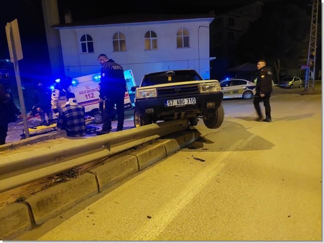 Olay, 20 Mart 2026 Cuma günü saat 23.30 sıralarında meydana geldi. Edinilen bilgiye göre, Sanayi Sitesi istikametine seyir halinde olan otomobil, Yeni mahalle geçişindeki virajda sürücüsünün direksiyon hakimiyetini kaybetmesi sonucu kontrolden çıktı. Yolun sağında bulunan karayolları bariyerine çarpan otomobil, çarpmanın etkisiyle bariyerlerin üzerine çıkarak askıda kaldı.
