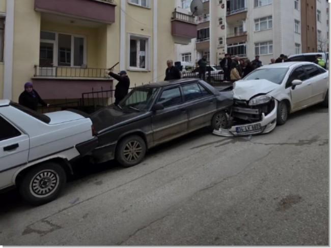 Edinilen bilgilere göre olay, 25 Mart 2026 Çarşamba günü Yıldız mahallesinde gerçekleşti. Seyir halindeki iki otomobilin kavşak noktasında çarpışması sonucu araçlar savruldu. Çarpışmanın şiddetiyle kontrolünü kaybeden otomobil, yol kenarında park halinde bulunan iki araca çarptı.