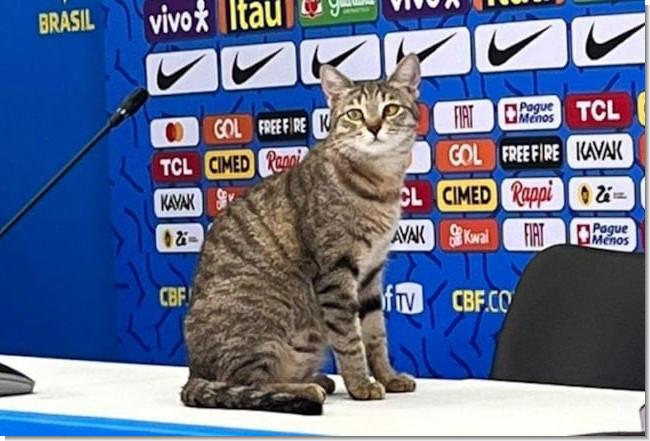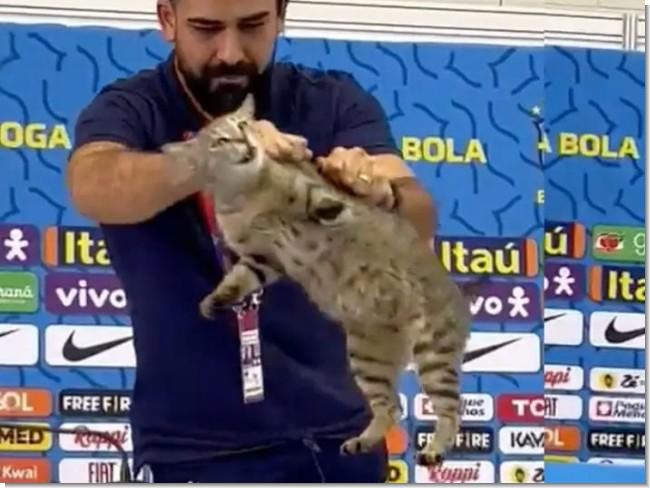 2022'de Dünya Kupası'nda gerçekleştirilen basın toplantısında bir kedi, Vinicius Jr.'ın röportajı sırasında masaya atladı. Brezilyalı yıldız kediye gülerek tepki verirken, basın sözcüsü ise onu fırlatıp masadan aşağıya attı.