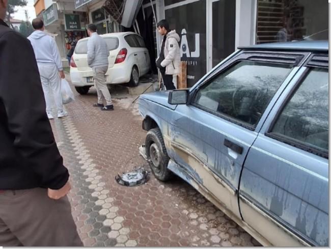 Ancak aracın durmaya niyeti yoktu; kontrolden çıkan otomobil, cadde üzerindeki bir fotoğrafçı dükkanının camlarını tuzla buz ederek içeri girdi.