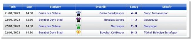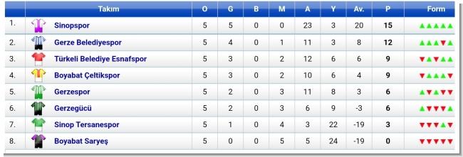 Sinop Büyükler 1. Amatör Futbol Liginde 21-22 Ocak 2023 günü oynanan 5. Hafta maç sonuçları ve puan durumu.